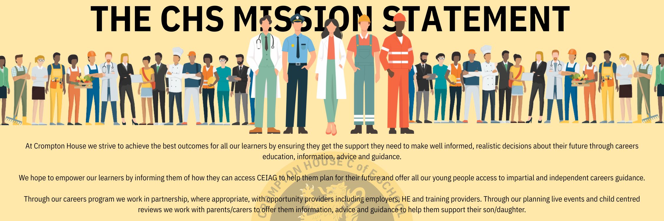 Welcome from our Careers Team! If you’d like to get in touch with us please contact the school on info@cromptonhouse.org with your questions and you’ll be guided to the correct team member.